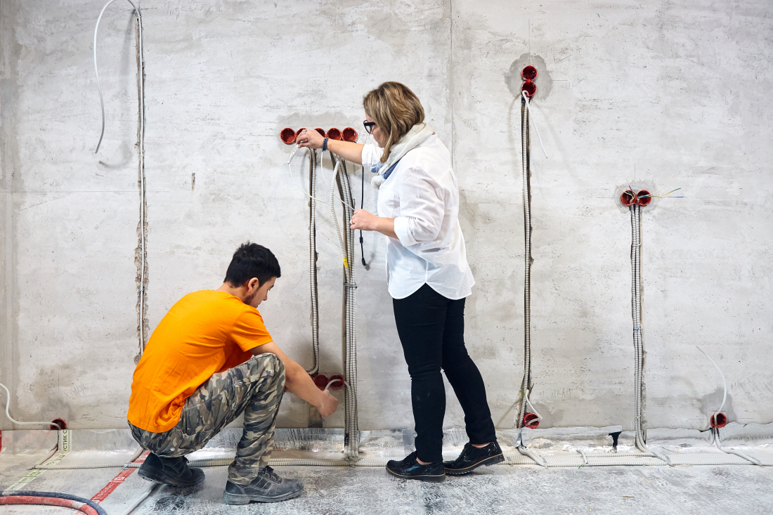 Первое, что нужно запомнить: нельзя экономить на том, что потенциально может разрушить весь ремонт и к тому же будет скрыто в стяжке или стенах. Любые коммуникации, особенно скрытые, должны отвечать высоким стандартам не только качества материалов, но и исполнения. Поэтому никогда не доверяйте людям без опыта работу с электрикой, сантехникой и отоплением в вашем доме.
