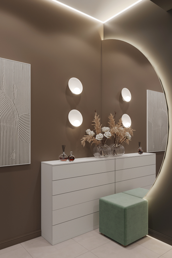 - Цветовая температура для жилых зон — 2700–3000K (тёплый белый свет).