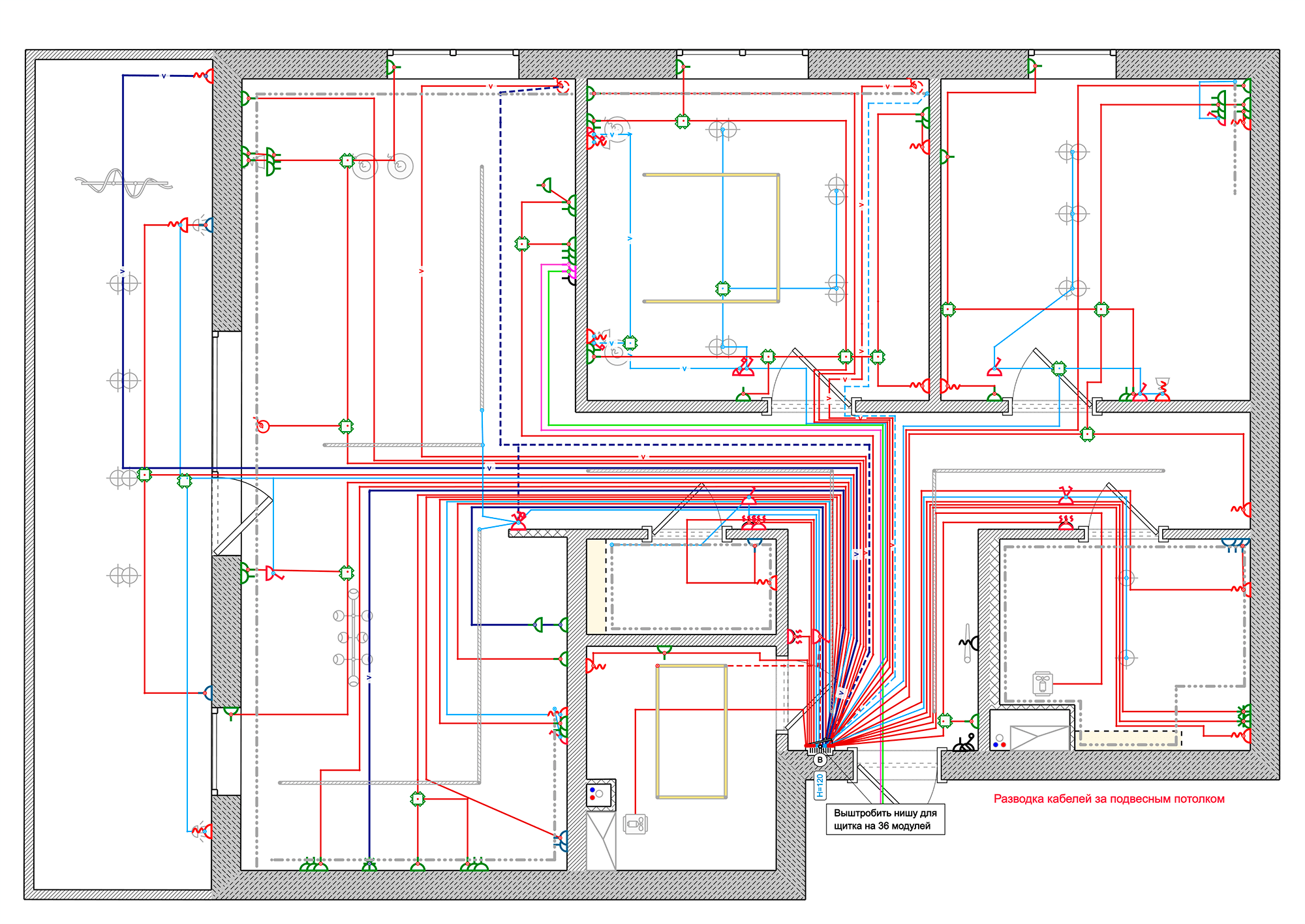 Remplanner – это современный планировщик, в котором можно создать качественный проект электрики для объектов любой сложности. Вся разводка электрики, включая слаботочные линии, расстановка розеток любого типа, выключателей и светильников выполняется онлайн. Благодаря 3D-режиму можно проверить расположение видимых элементов, проверить эргономику и избежать ошибок до начала монтажных работ.